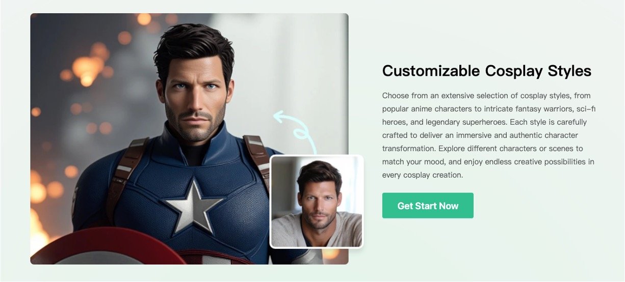 AI adapts to your facial features to create personalized cosplay looks.